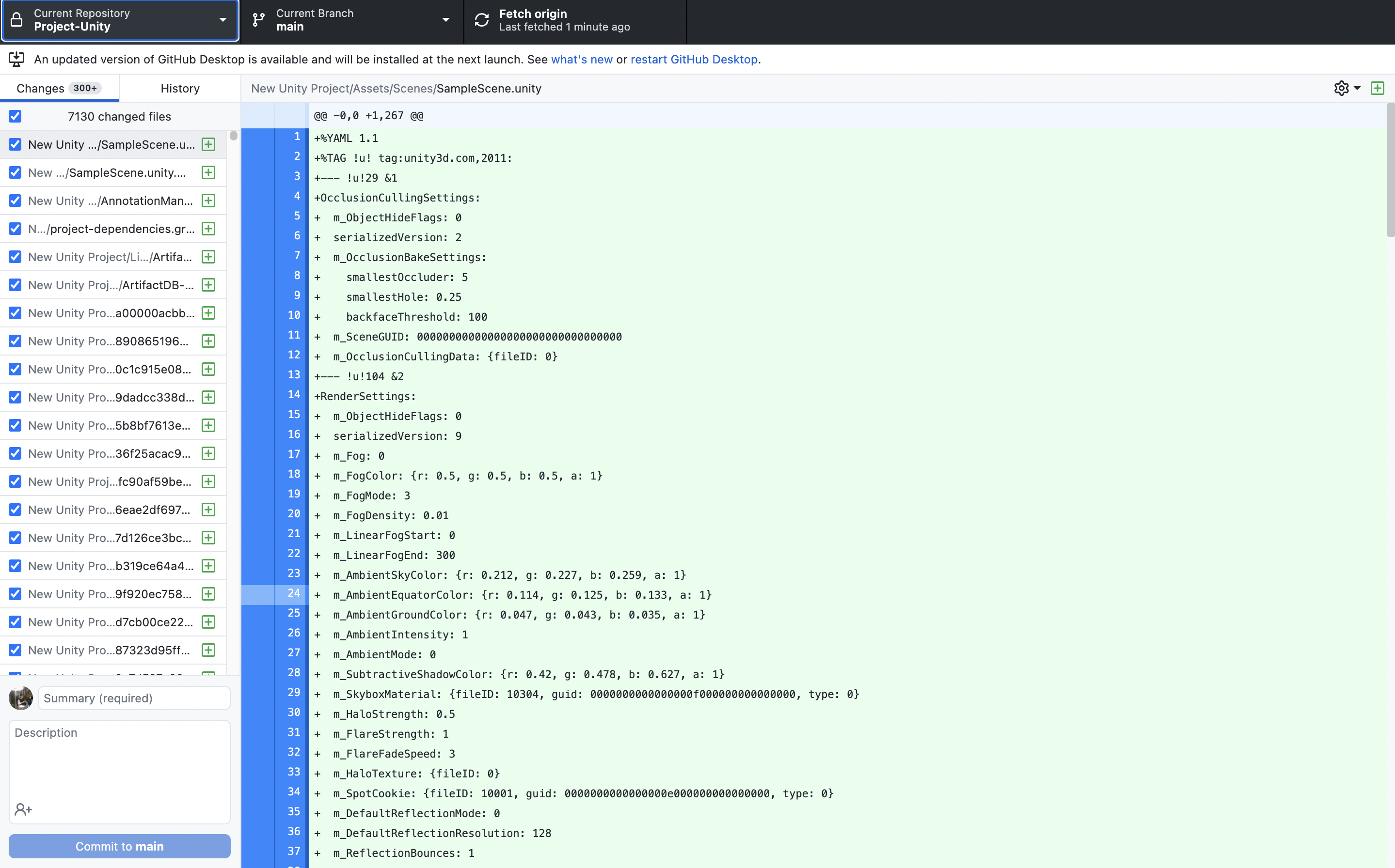 다시 깃허브 데스크탑 앱으로 들어가면 변경내역이 모두 나오는 것을 확인 할 수있다.
